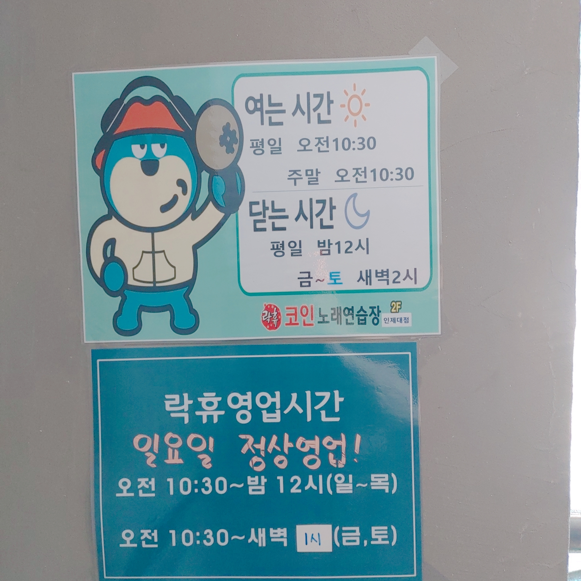 인제대 락휴 노래방은 따로 쉬는날이 없더라고요.