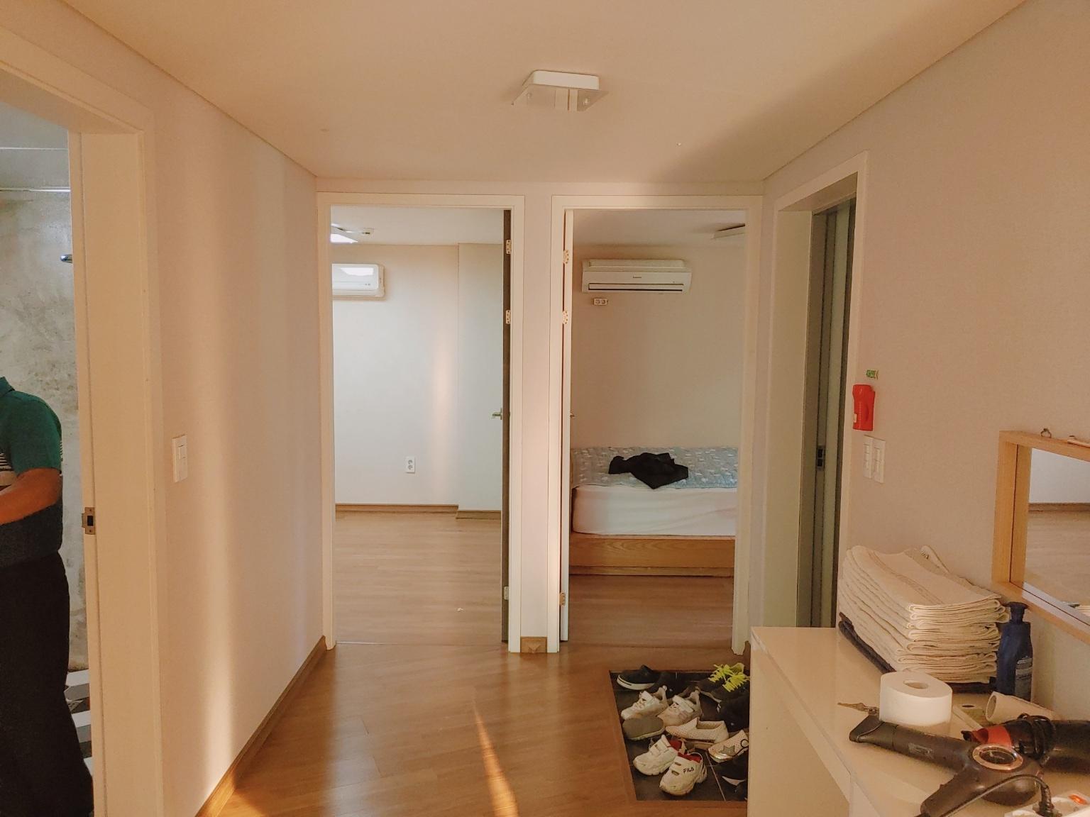온돌룸에는 창문이 없어서 갑갑한 느낌이랍니다. 그래도 환기시킬 수 있는 창문이 있더라고요. 보통은 창문 없는 방도 많은데 더여수펜션은 환풍창문이 있었어요. 그리고 각방마다 에어컨이 한대시 설치되어 있어요.