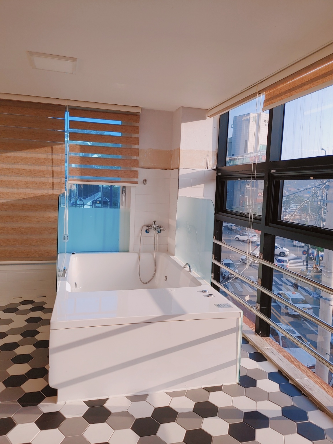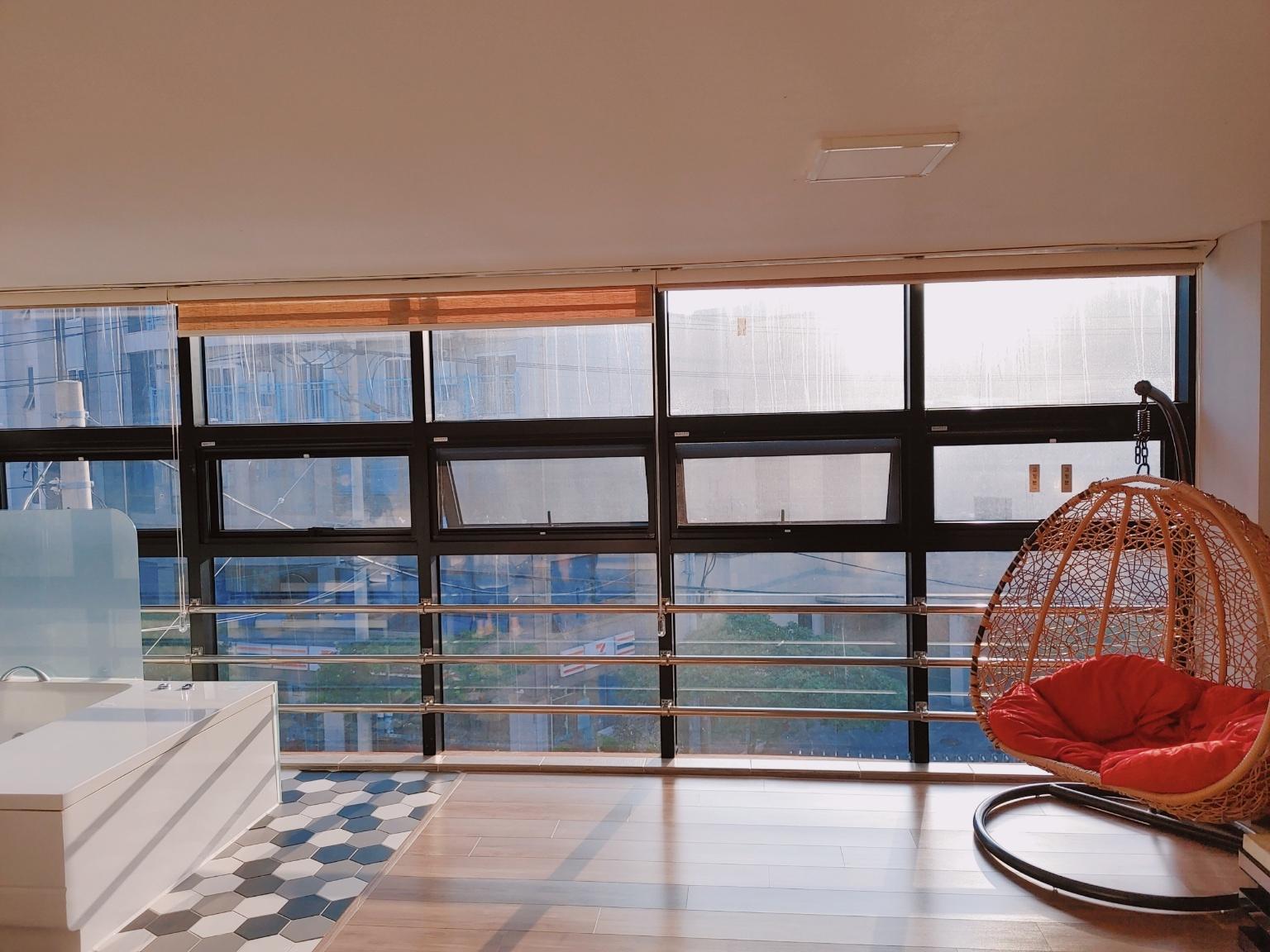월풀이 있는 창가로 틈새바다뷰가 보여요. 밤이 되면 저 멀리 케이블카와 야경도 살짝 잘 짝 보인답니다.