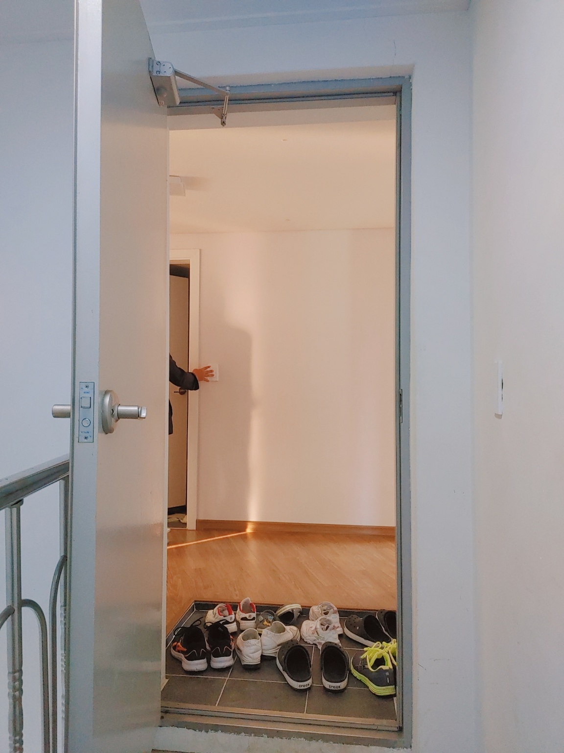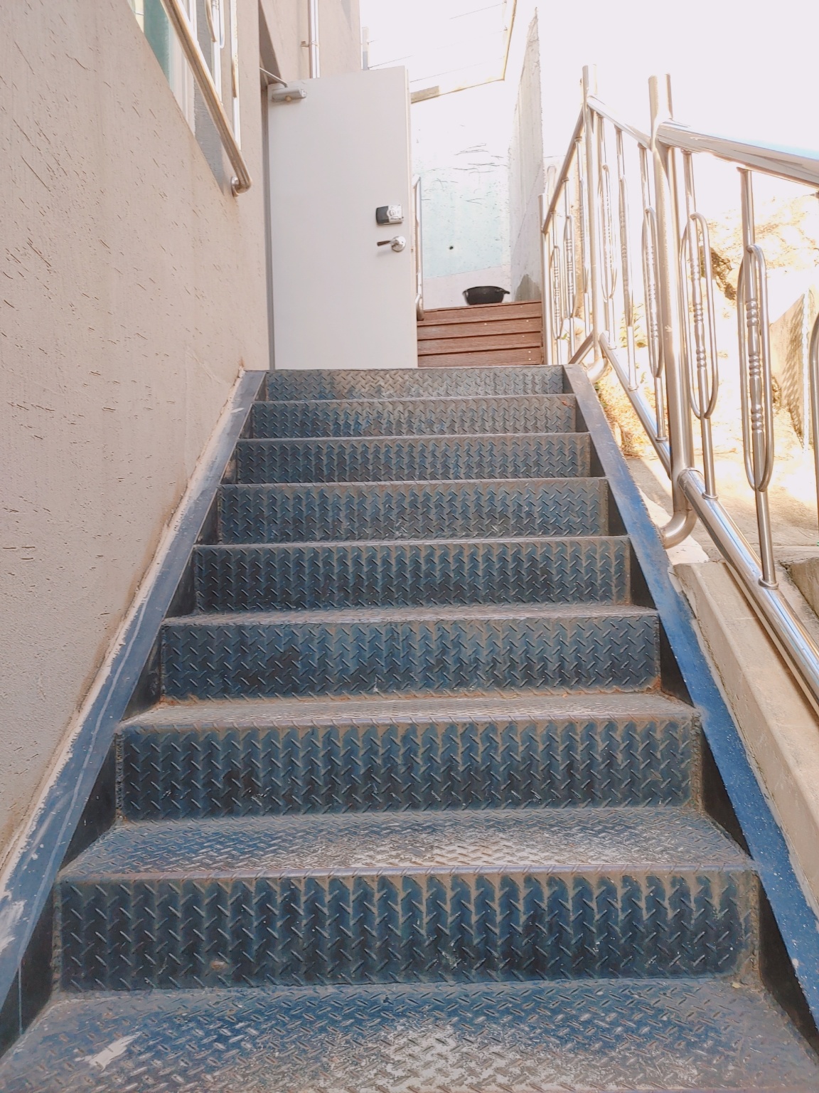 계단을 올라가면 들어가는 입구 비밀번호를 누르고 3층으로 올라가야한답니다. 이 계단을 올라가면 바로 2층이에요.