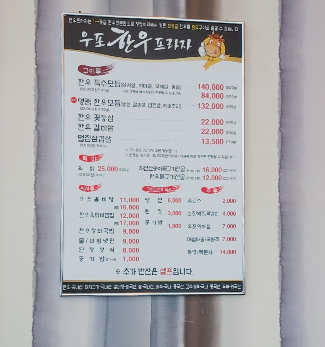하...... 내 사랑 고기들이 메뉴판에서도 맛있음을 풍기는 듯합니다 ㅠㅠ
