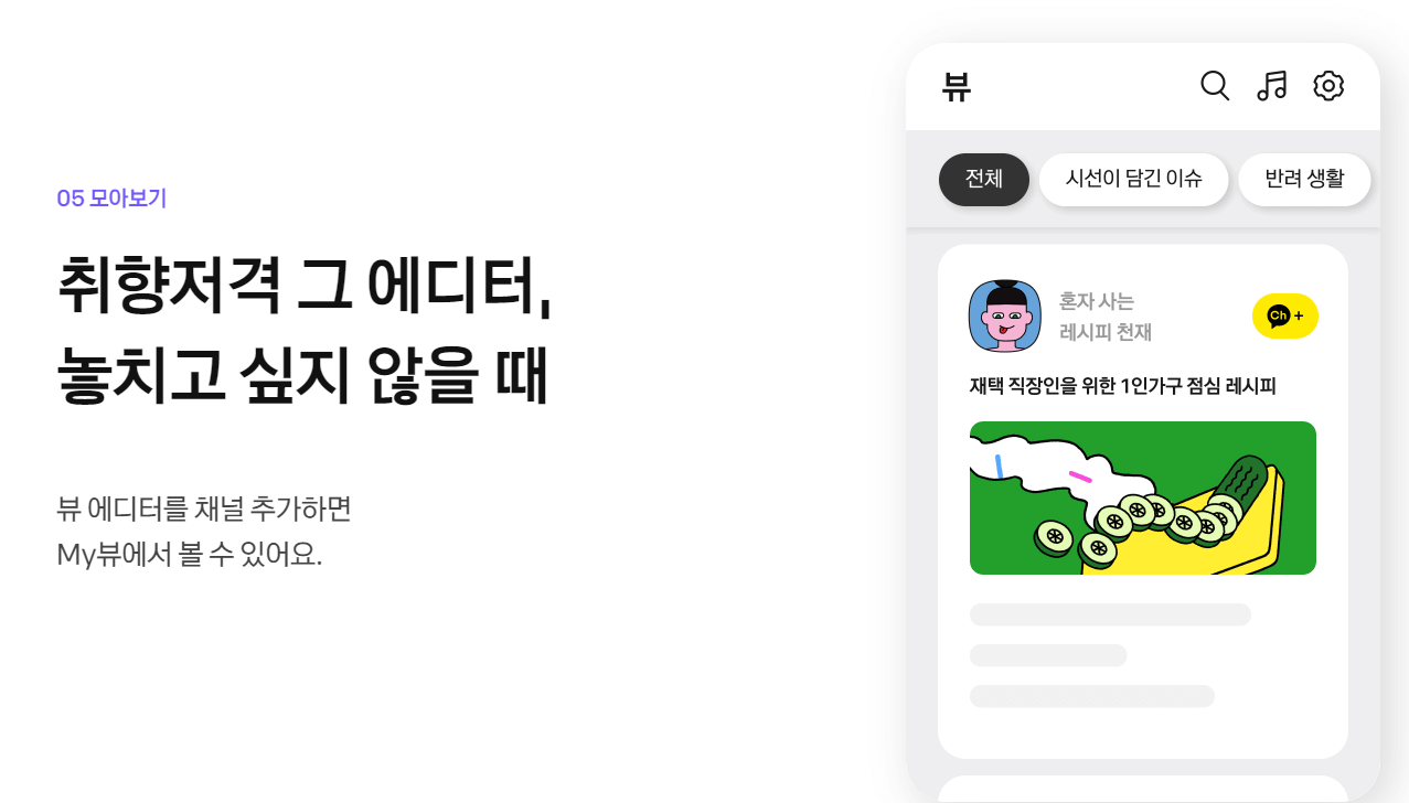 카카오 뷰는 "자신만의 관점으로 콘텐츠를 모으는" 편집의 가치를 중요하게 생각합니다.