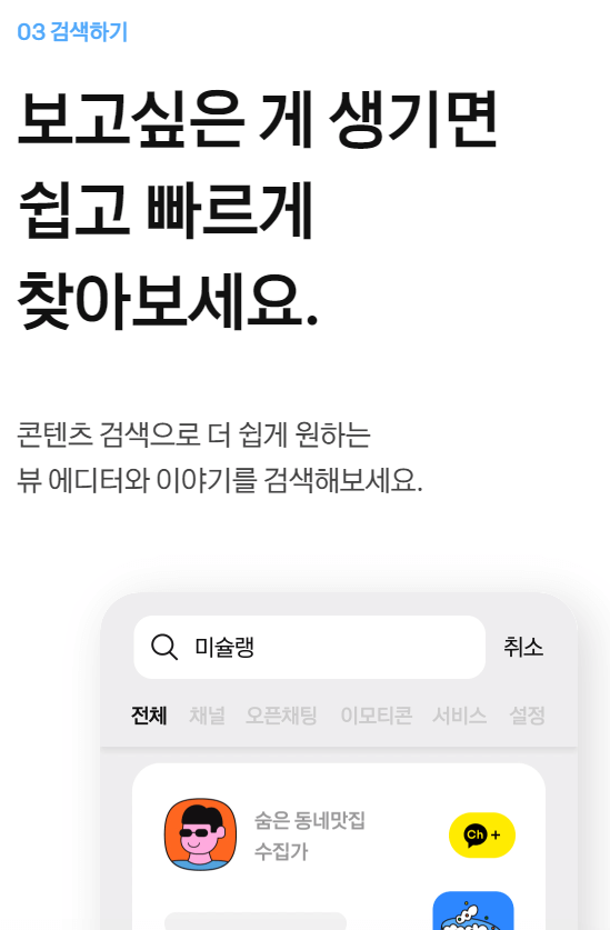 카카오뷰란 콘텐츠를 보는 새로운 시선, 세상을 보는 새로운 시선을 제공하는 플랫폼이라고 볼 수 있는 것 같아요.