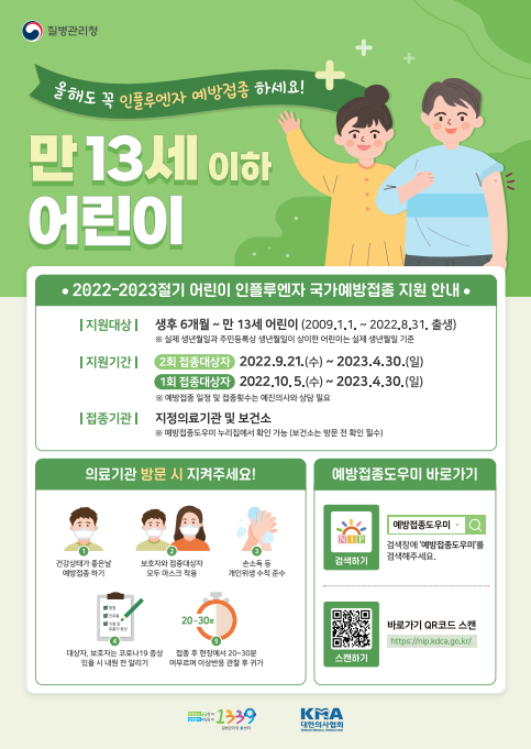 2022년 어린이 인플루엔자(독감) 무료 접종 :