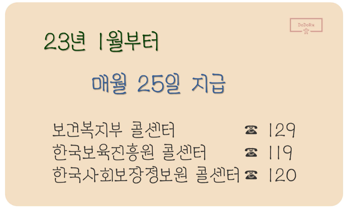 2023년 1월부터 매월 25일에 부모수당이 지급됩니다.