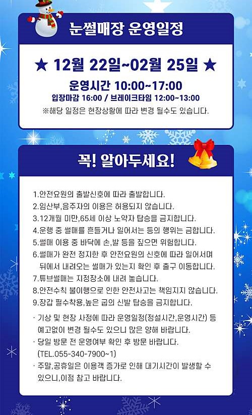 2023년 12월 22일부터 2024년도 2월 25일까지 썰매장 개장 예정이고요,