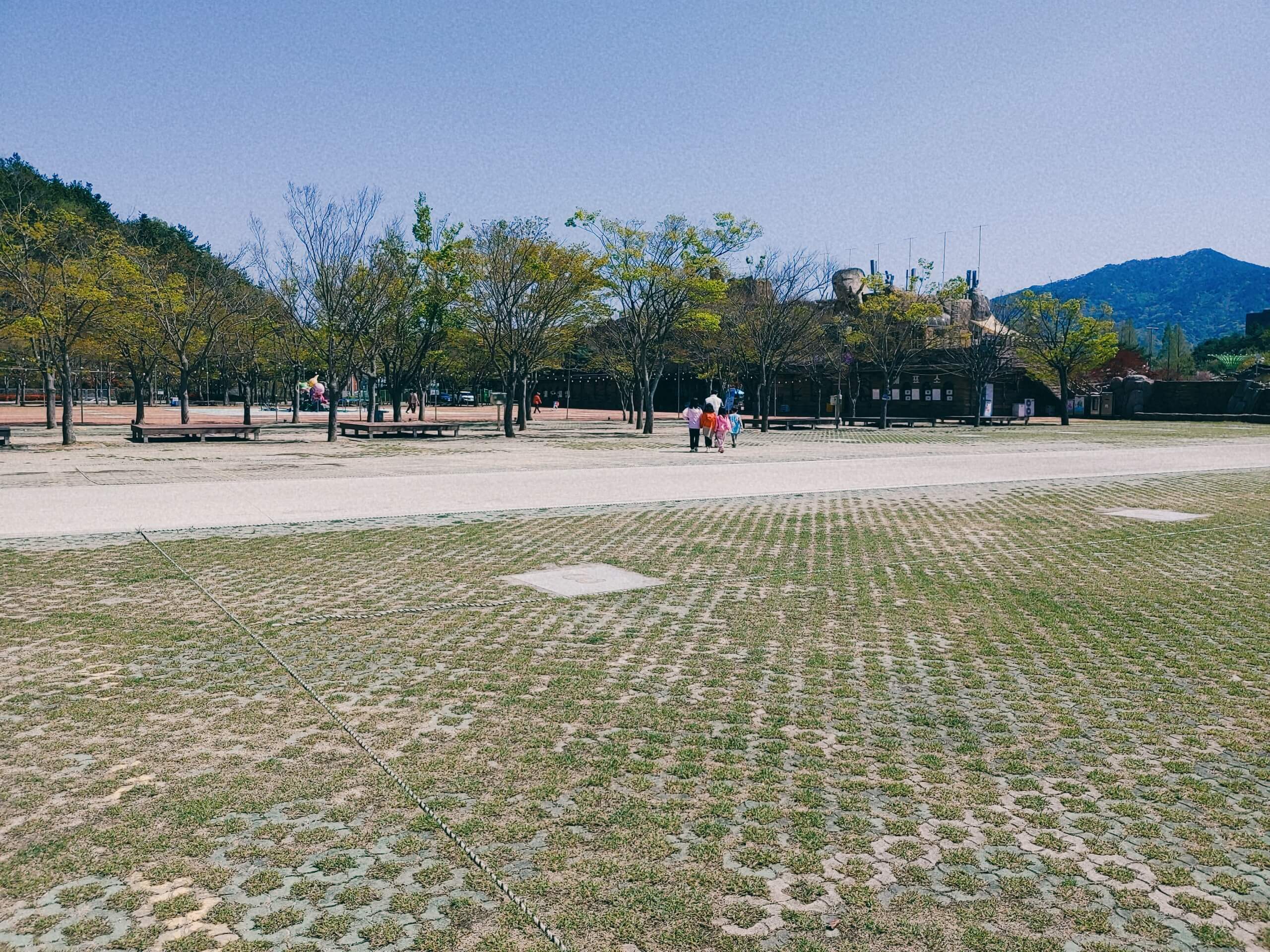 캐릭터관 옆에 있는 놀이터인 거 같아요. 음... 아빠들한테 보냈더니, 한분은 안 말리고 사진 찍어주시고, 한분은 등 돌리고 계셨구나..... 잠시 한눈판사이에 모래놀이 했다더니..... 아니었구나....
