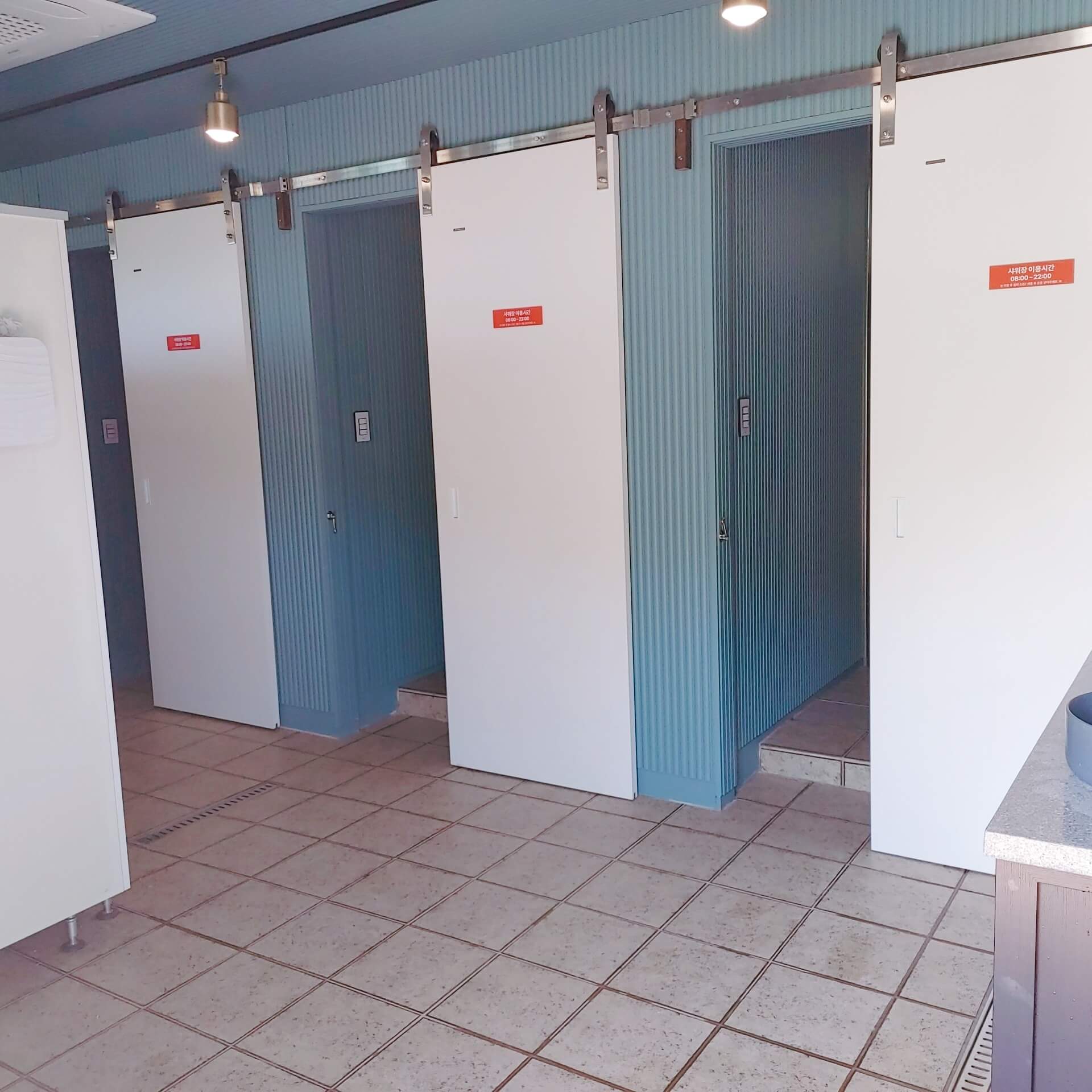 그리고, 7~23번은 화장실과 개수대가 무인카페 있는 곳까지 가야 했어요. 거리는 좀 있지만 시설은 엄청 깨끗하고 좋았어요.